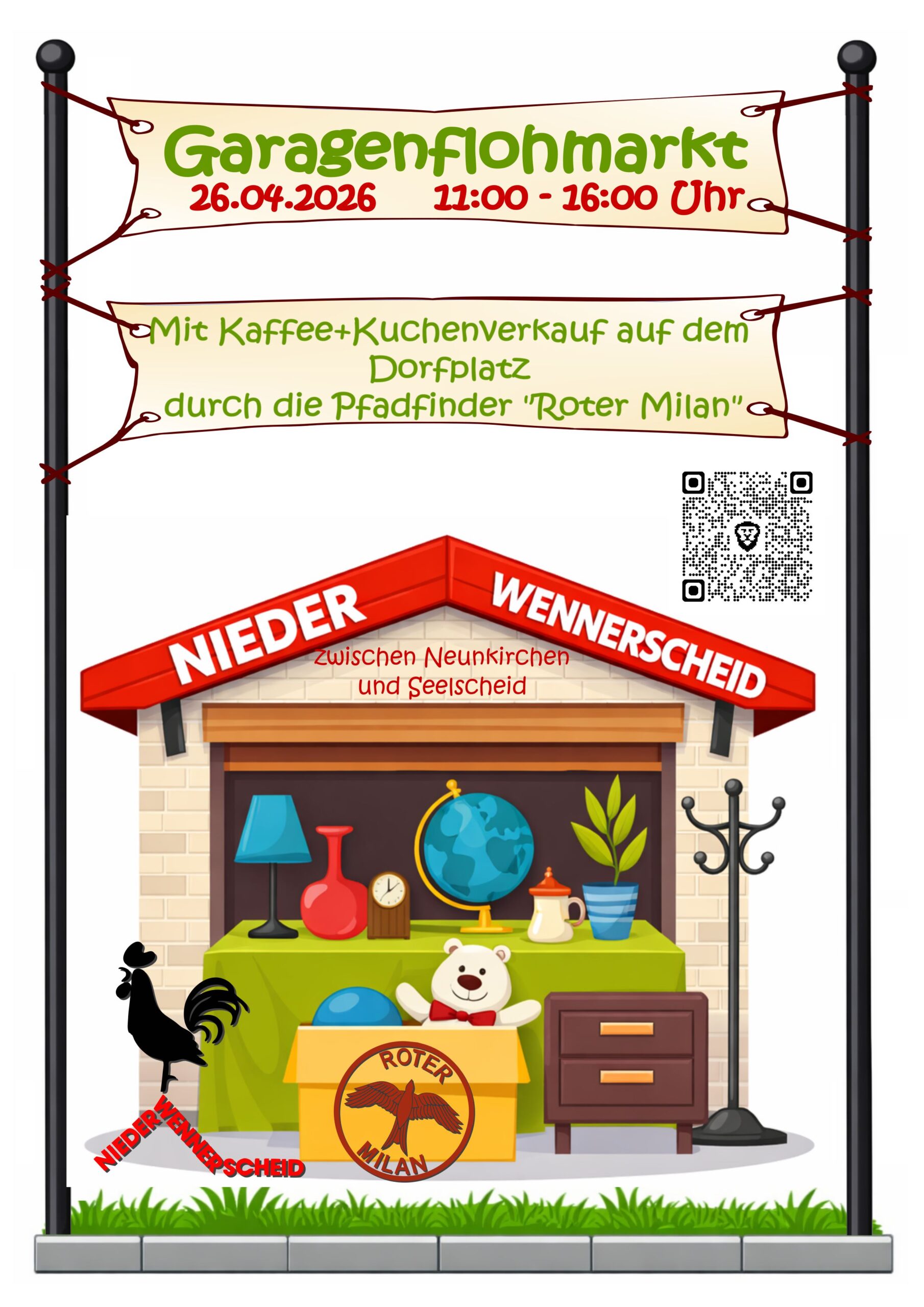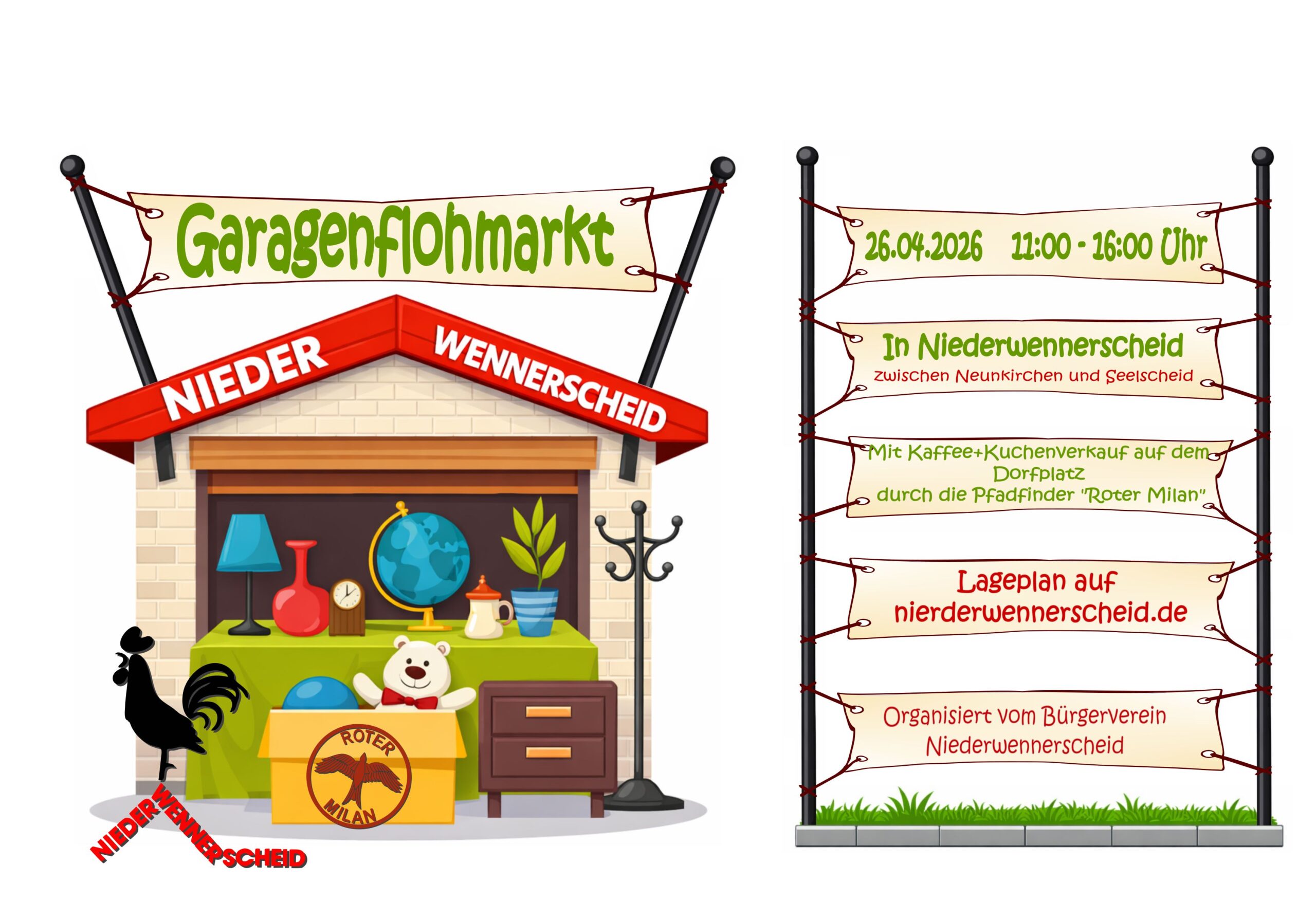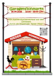 Bis zum 10. April können sich noch Wennerscheider Verkaufswillige zum Garagenflohmarkt anmelden, um im Lageplan zu erscheinen. Teilnahmegebühr 8,– €.
