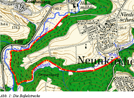Unser Spielfeld ist der befestigte Weg entlang des Wahn- und Wendbachs. Die erste Strecke endet am Rastplatz. Da beginnt auch die 2. Strecke. Nach insgesamt 3,3 km boßeln erreichen wir das Ziel, die Wennerscheider Straße. Von dort spazieren wir zurück zum Dorfplatz, wo wir den Grill für Bratwürste aktivieren, die Auswertung und Siegerehrung durchführen und noch eine Weile gemütlich beisammen sitzen können!