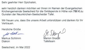 Der Spendenzweck wird beim nächsten Bürgertreffen Anfang Mai besprochen.