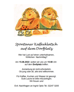 - Anmeldung zur Unterstützung beim Kuchenverkauf auf dem Dorfplatz: